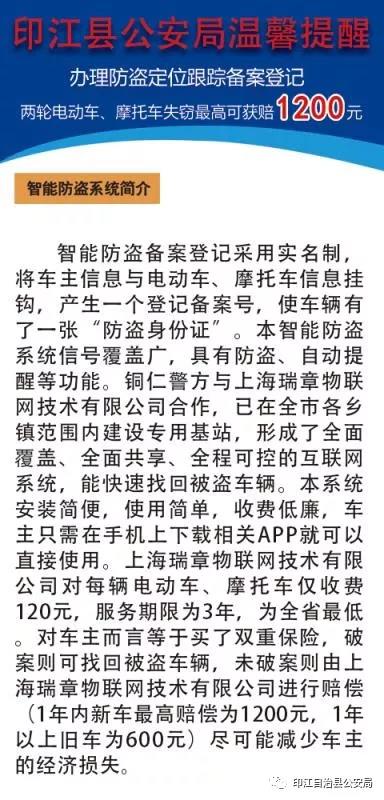 近日,印江县公安局平安警务云办公室民警利用摩托车智能防盗系统定位追踪,配合侦查员3分钟锁定目标,20分钟发现被盗车辆,9小时抓获作案人员。通过该案还找回了近期被盗的摩托车5台,抓获作案人员2人。 10月26日上午11时许,指挥中心接谭祥镜报警称其车牌号为贵DCBxx0的摩托车,25日晚停在峨岭街道普同村的家中被盗,要求出警处理。接报后指挥中心通过进一步询问得知其已安装了平安警务云摩托车智能防盗蕊片,接警员将案情通报给平安警务云办公室民警,由于该案系印江县公安局启动摩托车智能防盗系统建设以来首例案件,平安警务云办公室民警迅速反映,立即登录摩托车智能防盗系统云平台输入“贵DCBxx0”查询,根据先关信息及天网视频监控,发现作案人员为2人,疑似在校学生,作案人员的体貌特征、年龄、衣着、逃跑情况快速获取。经审讯,犯罪嫌疑人张某对25日晚11时许伙同胡某某窜入普同村将车牌号为贵DCBxx0摩托车盗走的犯罪事实供认不讳。 该案从接到报警到成功侦破只用了9小时11分。至此,成为印江公安利用摩托智能防盗系统破获摩托车被盗首例案件。通过进一步审讯,犯罪嫌疑人还交待了近期在印江县范内盗窃6台摩托车的犯罪事实,该案正在进一步侦办中。 摩托车智能防盗系统建设自今年9月份启动以来,印江县公安局采取“政府支持、企业实施、市场运作、公安监管、群众参与”的模式,实行“社区(村居)、乡镇综治、平安警务云办”三级联动方式,制定科学易于操作的考核细则,在各乡镇、各村寨、各社区企业事业单位普遍开展宣传动员快速推进系统建设,截止11月7日止,全县共安装摩托车智能防盗系统5100余台,警务云平台内产生车辆轨迹15万余条。